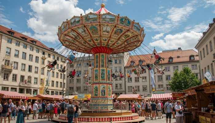 On June 14 and 15, 2025, Munich’s Old Town will turn into a big party. From morning until night, the area is busy. It’s between two main streets. You’ll find live music there. There will be dancing too. Enjoy fun games and activities. Everyone can join the fun. There’s a beer garden. You can ride a Ferris wheel. There’s also a special crafts village and market with handmade things to check out. Families can enjoy cool programs, city tours, and lots of surprises along the way. The fun kicks off on Saturday at 11:15 a.m. on Marienplatz. Street performers will pop up with fun birthday acts and playful entertainment. Bands will play music, and the historic Würmesia City Guard will parade through. There’s something for everyone just come ready to smile and explore!
